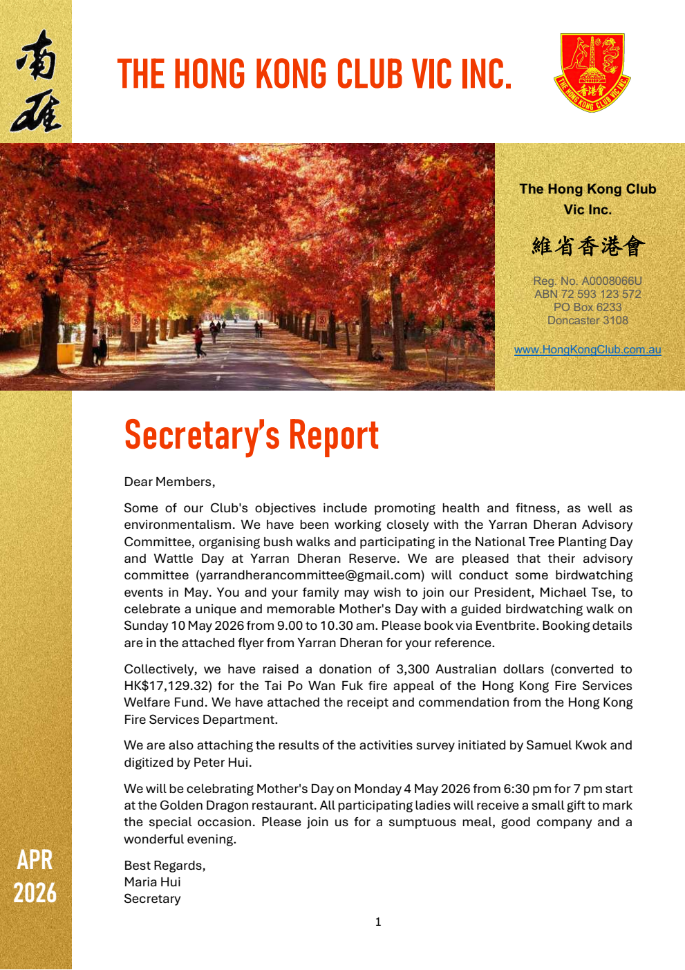 Should any member have any concerns that any such photos is/are not to be exhibited, please email Maria Hui, Hong Kong Club Secretary maria.hui@bigpond.com ASAP before 20/11/2025.